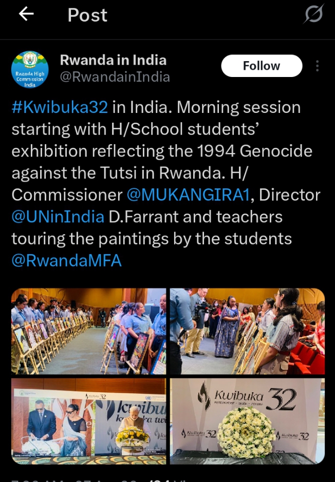 Nk’uko Ambassade y’u Rwanda mu Buhinde ibyerekena Ibi bihangano babyerekanye mu gitondo cyo ku wa 7 Mata 2026, mu cyumba cyabereyemo igikorwa cyo Kwibuka ku nshuro ya 32 Jenoside yakorewe Abatutsi mu 1994.