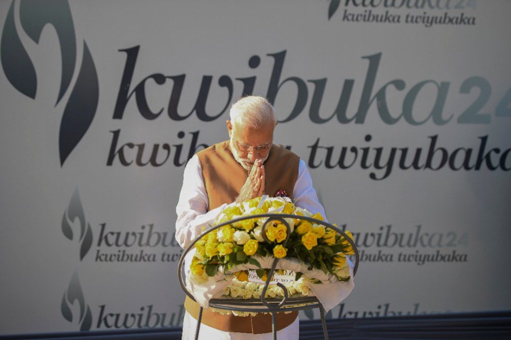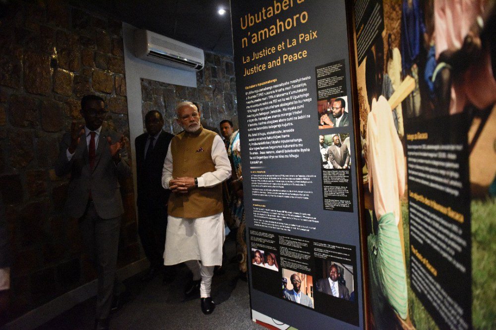 Ubwo yari mu Rwanda Minisitiri w’Intebe w’u Buhinde Narendra Modi yanasuye urwibutso rwa Jenoside rwa Kigali ruri ku Gisozi, rushyinguwemo inzirakarengane za Jenoside yakorewe Abatutsi mu 1994 zigera ku bihumbi 250.