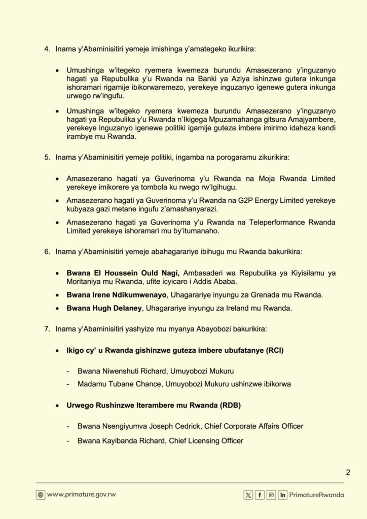 Mu Rwego Rushinzwe Iterambere mu Rwanda (RDB), hashyizweho abayobozi mu myanya ikurikira: