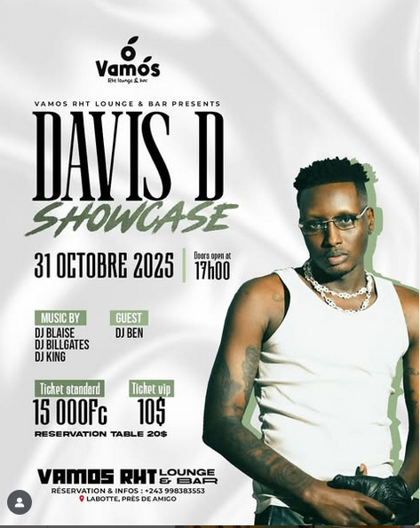 Umuhanzi Icyishaka Davis uzwi ku izina ry’ubuhanzi rya Davis D, agiye gutaramira muri Repubulika Iharanira Demokarasi ya Congo mu mujyi wa Bukavu ugenzurwa na AFC/M23 kuri uyu wa Gatanu tariki ya 31 Ukwakira 2025.