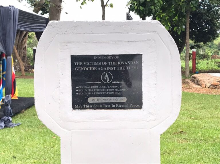 Ubu imibiri 4,771 niyo iruhukiye ku rwibutso rwa Ggolo ruri mu Karere ka Mpingi muri Uganda, rukaba rwubatse ku butaka bwe bwite yitanze kugirango babone aho baruhukira.