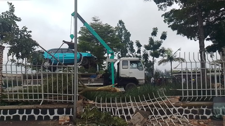 Mu murenge wa Muhoza mu Karere ka Musanze umushoferi wari utwaye imodoka nto yo mu bwoko bwa voiture yataye umuhanda agonga urukuta rw’Akarere ka Musanze.