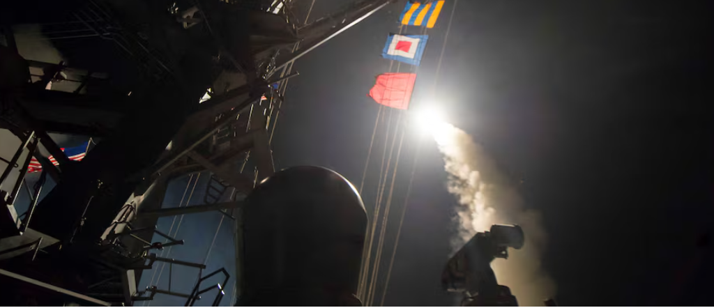 Misile y’igisirikare cy’Amerika yo mu bwoko bwa tomahawk, yarashwe mu nyanja ya Mediterane ku wa 17 Mata 2017 kigamije guterwa muri Siriya (Ifoto: Reuters)