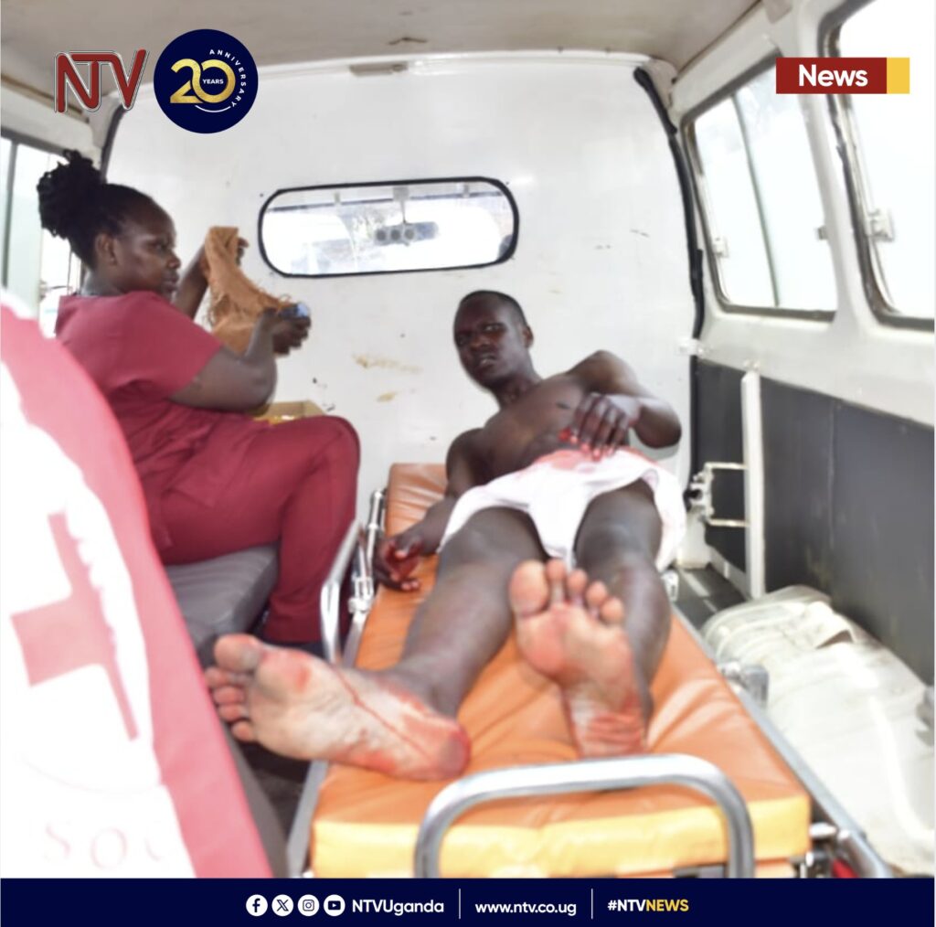 Abakozi ba Croix-Rouge bahise bamutabara bamuha ubuvuzi bw’ibanze mbere y’uko ajyanwa ku kigo nderabuzima cya Lamone Health Center kiri i Luzira kugira ngo akomeze kwitabwaho n’abaganga.