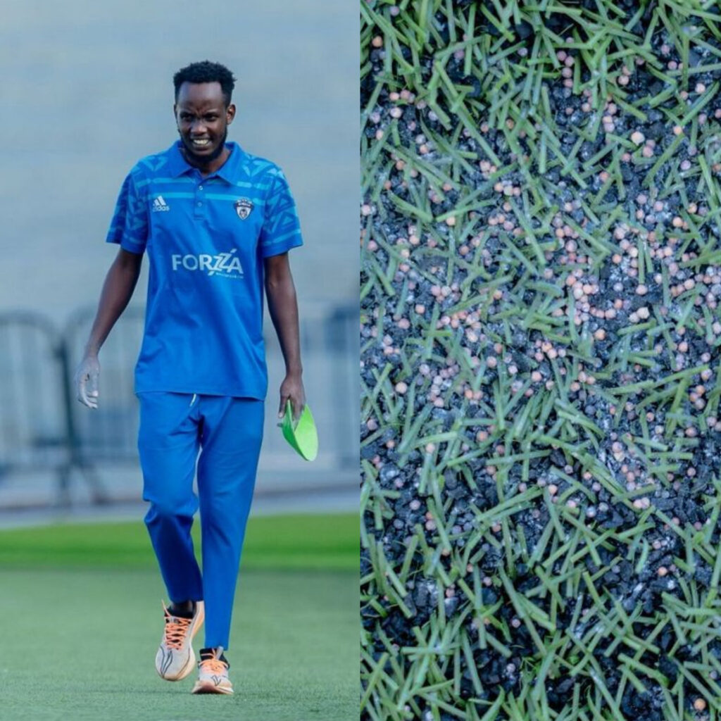 Ndatimana Olivier yagaragaye anyanyagiza ifu mu kibuga isa n’aho ivanze n’amasaka